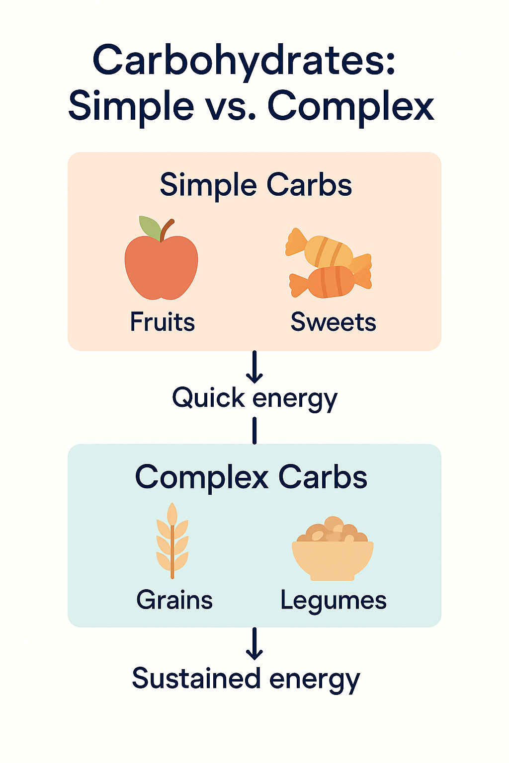 – Simple carbohydrates provide quick energy while complex carbohydrates offer sustained energy.