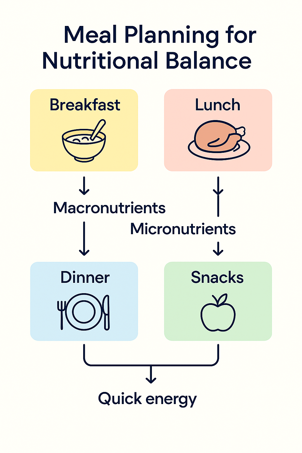 Ensure that each meal includes a balance of macronutrients – carbohydrates, proteins, and fats – as well as a variety of micronutrients.